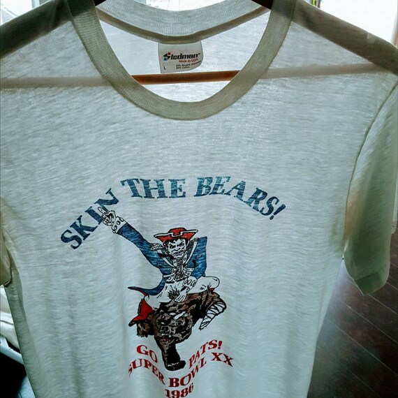 Vintage new england patriots t shirt 80s t shirt 1980s nfl boston ma tee anvil large made usa super bowl rivalry dolphins bears legacyvintage99.