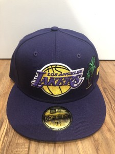 Very hard to find new authentic era fitted hat all original from new era has palm tree taco bear 9 area codes lakers on back state of cali all stitched on hatp. White purple black red palm tree hat color. Shipped with usps first class. Fitted adjustable snapback beanie lakers hats.