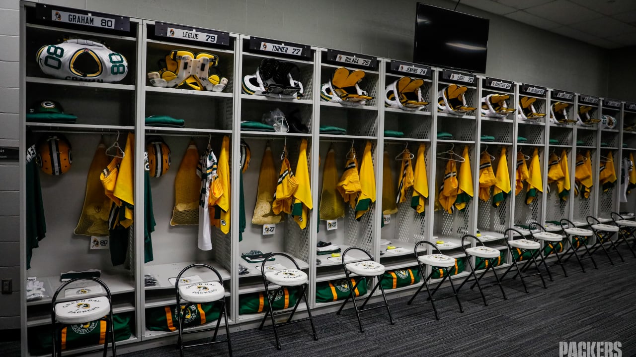 The green bay packers equipment staff put the finishing touches on the teams locker room at lambeau field on nov. Both during brees postgame interview and during the locker room celebration. Locker room interviews.