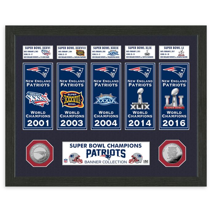 New england patriots flags banners. The patriots made room for another super bowl memento above their south end zone. All you need to know about new england patriots super bowl nfl banners. Super bowl 38 xxxviii new england patriots winning streak heritage wool banner.