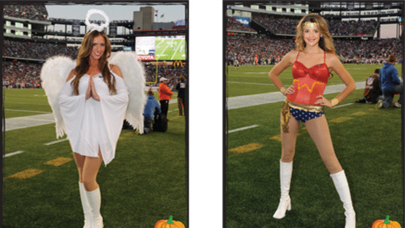 Patriots cheerleaders in halloween costumes.