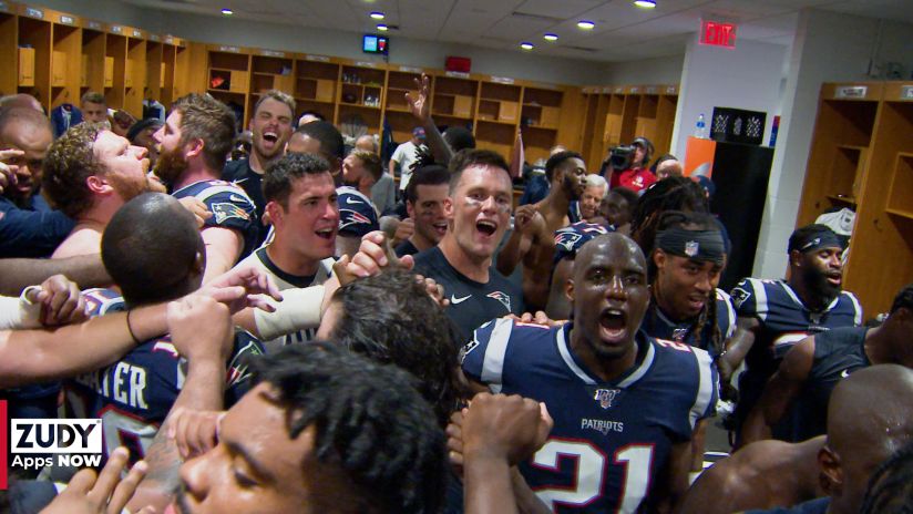 Locker room celebration following the win over the dolphins step inside the patriots locker room to see the team celebrating their win against the miami dolphins on sunday september 15 2019.