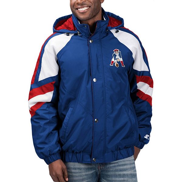 New england patriots starter pro line hooded winter jacket s m l xlblue.