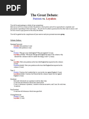 Patriots Vs Loyalists Debate Arguments