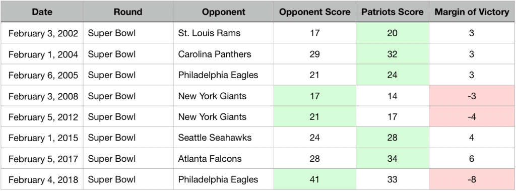 6 all time passing leader. 6 11 appearances championships won. Brady has a 3011 record as a starting quarterback in the postseason. The following is a list of all regular season and postseason games played between the new england patriots and philadelphia eagles.