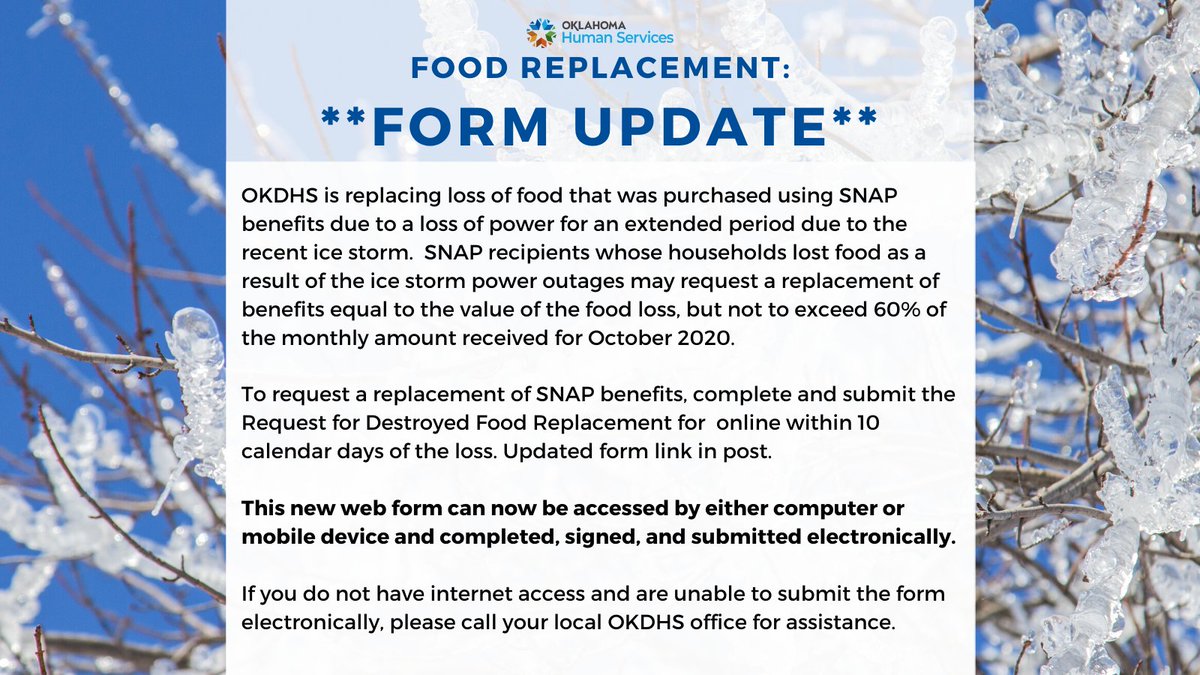 Dta can also give help you replace food lost due to a fire flood or power outage food that you bought with your snap benefits. This can be done either over the phone or in writing. We will replace any food that you lost. Snap replacement benefits power outagefood loss.
