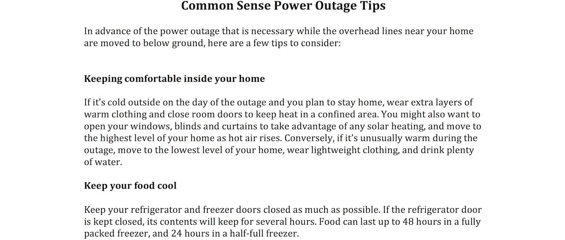 Power Outage Letter To Residents
