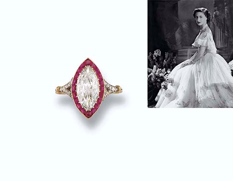 High jewellery in the 1980s often included one of the traditional gemstones sapphire ruby and emerald framed by clusters of diamonds. Five years after her engagement to group captain peter townsend fell apart queen elizabeths sister princess margaret received a ruby engagement ring that was designed by her future husband. The auctions lot notes describe the ring as follows. The ring was not sold with princess margarets estate at christies on june 13 2006.