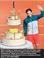 Rafael nadal celebrated his 27th birthday with a humongous cake after defeating kei nishikori 6 4 6 1 6 3 to reach the quarterfinals of the french open on monday.