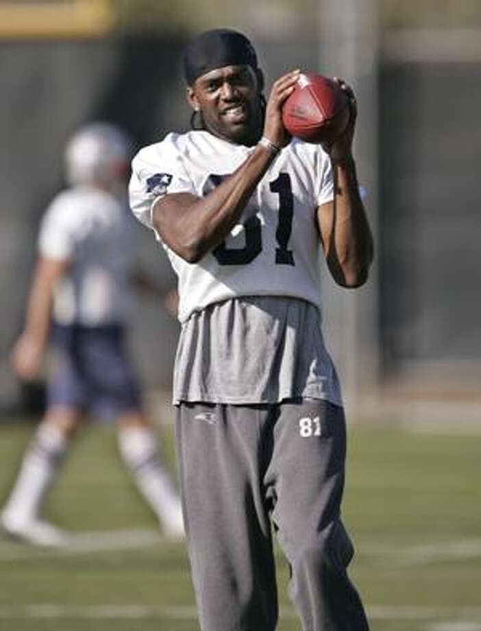 Traded by raiders to patriots for 2007 4th round pick 110th overall john bowie october 6 2010. Considered to be one of the greatest wide receivers of all time he holds the nfl single season touchdown reception record 23 in 2007 the nfl single season touchdown reception record for a rookie 17 in 1998 and is second on the nfl all time regular season touchdown reception list with 156.