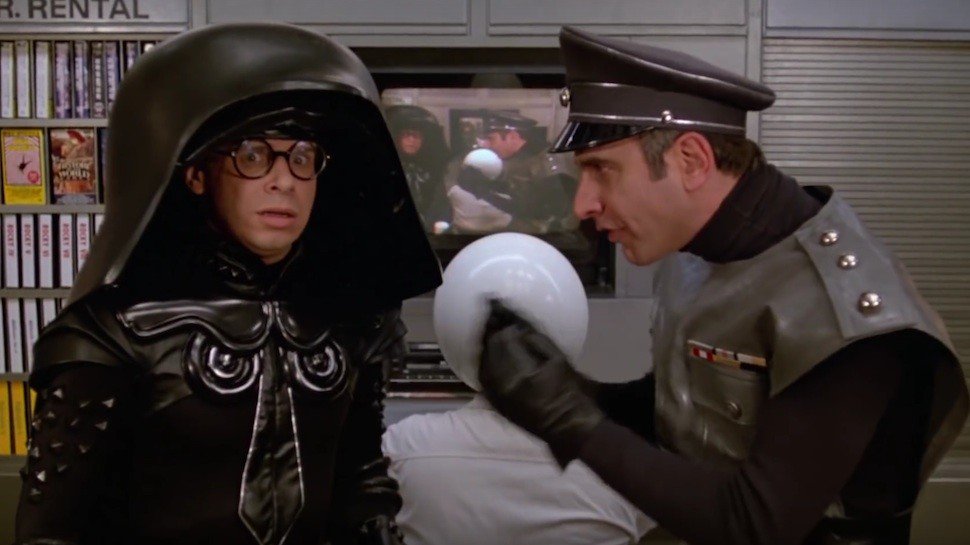 Rick moranis spaceballs helmet. He was portrayed by rick moranis who also played the toy taker in rudolph the red nosed reindeer and the island of misfit toys. Rick moranis spaceballs helmet is up for auction. Fans of the classic spoof movie spaceballs can now place bids to win rick moranis helmet from the film. On the peaceful planet druidia king roland attempts to marry his daughter princess vespa to prince valium but vespa and her loyal droid dot matrix escape during her wedding.