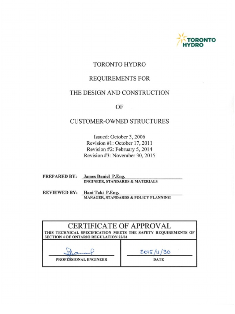 Toronto hydro electric system limited 715 milner avenue scarborough ontario m1b 3c3. Poles cable chambers cable pull rooms conduitduct banks padmounts vault. It will be necessary for the property owner to. Removing the agreement from the title once toronto hydro has agreed to take over the ongoing maintenance of the hydro duct bank within the public right of way.