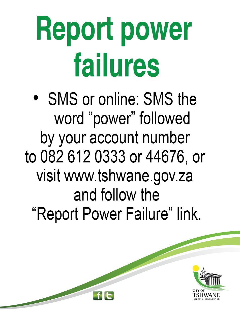 012 358 21119999 or 080 11 11 556. About tshwane city of tshwane at glance council council office of the chief whip office of the speaker council meetings. The city of tshwane apologises for the inconvenience caused. Report a power failure.