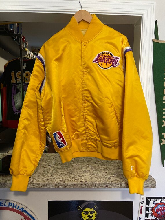 Pair your fashion forward lakers jacket with your favorite jeans and sneakers or step up your game with an athletic look featuring an on court warmup jacket pants and a flat bill hat. Los angeles lakers vintage bomber satin very rare 32 jacket. Hide filters show filters filters 0. Vintage lakers satin starter jacket mens large 80s nba button snaps jrami618.